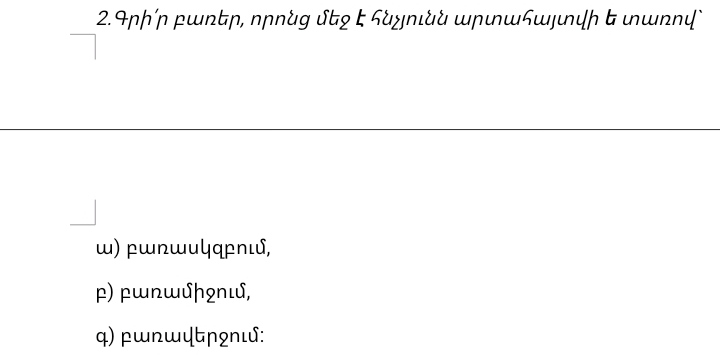 3.Գրի՛ր հինգական բառ, որոնց մեջ ե տառնարտահայտի յէ; հնչյունակապակցությունը`